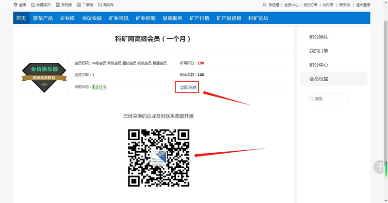 礦業(yè)科技綜合服務(wù)平臺-科礦網(wǎng)高級會員領(lǐng)取流程