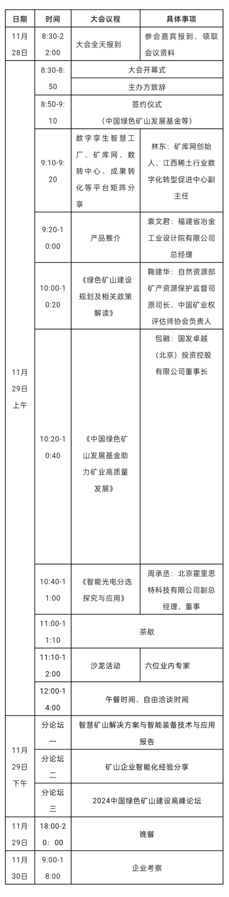 會議時間:2024年 11月28-30日(28日全天報到)會議地點:中國·福州大會主題:聚焦發(fā)展新質(zhì)生產(chǎn)力,推進智能化綠色礦山建設