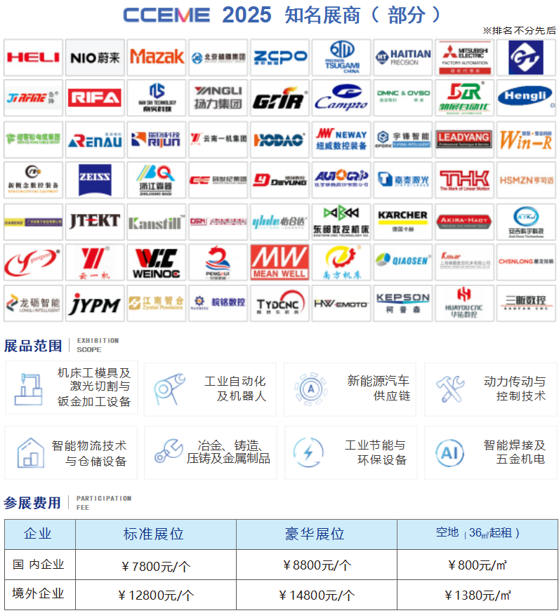 2025合肥制 (智)博會(huì)于5月23日 至26日在合肥濱湖國(guó)際會(huì)展中心拉開(kāi)帷幕 ,展覽面積達(dá)30000余平方米 ,來(lái)自境內(nèi)外的400余家企業(yè)參展 , 2000余臺(tái)套智能裝備 ; 吸引海內(nèi)外觀眾共計(jì)30萬(wàn)+人次 ;1 0人以上專業(yè)采購(gòu)團(tuán)近百家 ;匯聚一大批國(guó)內(nèi)外知名參展企業(yè)和品牌 ,如 山崎馬扎克、津上、THK、蔡司 、蔚來(lái)、精雕、通用 、海天、喬鋒、臺(tái)群、 日發(fā)、卓樸、??怂箍?、西鐵城、三豐、揚(yáng)力 、鵬睿、揚(yáng)森、德?lián)P、威諾克、立揚(yáng)、迪蒙、瑞均、斯巴克、金火、云南一機(jī)、南方、普力馬康、厚道、品高、佳盟子、奧斯瑪、喬森、晨龍、東部、亨司邁、騰垠東、雷諾斯特、龍礪、銘揚(yáng)、嘉泰、科宇、亞德客、三菱、臺(tái)達(dá)、怡合達(dá)、勃展、卡赫、坦能、南實(shí)、安琦、江汽、祥裕、大白等百余家頭部企業(yè) ,圍繞汽車輕量化、家電個(gè)性化定制 、數(shù)字化工廠、柔性制造、機(jī)器人應(yīng)用 、光伏新能源、高端裝備制造、高端芯片 、激光與增材制造、綠色制造、工業(yè)4.0等數(shù)千種制造產(chǎn)品精彩展示 ,覆蓋全產(chǎn)業(yè)鏈,向行業(yè)傳遞出積極信號(hào) ,打造長(zhǎng)三角智能制造產(chǎn)業(yè)新平臺(tái) !