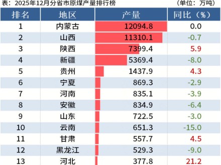 近日,國(guó)家統(tǒng)計(jì)局發(fā)布數(shù)據(jù)顯示,2025年12月,我國(guó)規(guī)模以上工業(yè)能源生產(chǎn)呈現(xiàn)“傳統(tǒng)能源穩(wěn)基、清潔能源增勢(shì)、加工產(chǎn)業(yè)提速”的良好