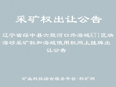 按照《自然資源部關(guān)于印發(fā)<礦業(yè)權(quán)出讓交易規(guī)則>的通知》(自然資規(guī)〔2023〕1號(hào))、《自然資源部關(guān)于規(guī)范和完善砂石開(kāi)采管理的通知》(自然資發(fā)〔2023〕57號(hào))、《自然資源部關(guān)于進(jìn)一步做好用地用海要素保障的通知》(自然資發(fā)〔2023〕89號(hào))、《關(guān)于印發(fā)〈遼寧省礦業(yè)權(quán)出讓交易實(shí)施細(xì)則(試行)〉的通知》(遼自然資發(fā)〔2023〕101號(hào))、《關(guān)于規(guī)范我省海砂資源開(kāi)采管理工作的指導(dǎo)意見(jiàn)》(遼自然資發(fā)〔2022〕33號(hào))等文件精神,受遼寧省自然資源廳委托(遼礦出委〔2024〕1號(hào)),遼寧省公共資源交易中心以“兩權(quán)合一”網(wǎng)上掛牌方式組織實(shí)施遼寧省綏中縣六股河口外海域KT1區(qū)塊海砂采礦權(quán)和海域使用權(quán)出讓工作?,F(xiàn)將有關(guān)事項(xiàng)公告如下: