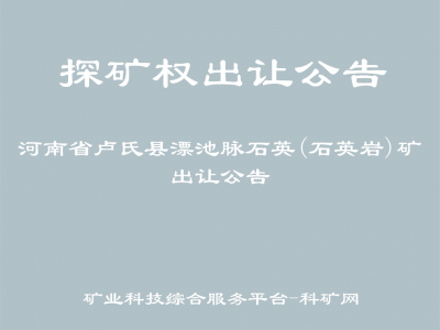 根據(jù)《中華人民共和國礦產(chǎn)資源法》、《中華人民共和國招標(biāo)投標(biāo)法》、《自然資源部關(guān)于印發(fā)"礦業(yè)權(quán)出讓交易規(guī)則"通知》(自然資規(guī)[2023]1號)等規(guī)定,三門峽市自然資源和規(guī)劃局委托中鼎譽(yù)潤工程咨詢有限公司對河南省盧氏縣漂池脈石英(石英巖)礦普查以招標(biāo)方式進(jìn)行公開出讓,現(xiàn)將有關(guān)事項公告如下: