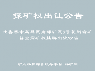 為深化礦產(chǎn)資源有償使用制度,培育和建立規(guī)范、開放、競(jìng)爭(zhēng)、有序的礦業(yè)權(quán)市場(chǎng),促進(jìn)礦產(chǎn)資源有序開發(fā),根據(jù)《中華人民共和國(guó)礦產(chǎn)資源法》、《礦業(yè)權(quán)出讓交易規(guī)則》(自然資規(guī)〔2023〕1號(hào))、《關(guān)于印發(fā)〈新疆維吾爾自治區(qū)礦產(chǎn)資源管理若干事項(xiàng)暫行辦法〉的通知》(新自然資規(guī)〔2021〕1號(hào)),經(jīng)吐魯番市人民政府批準(zhǔn),吐魯番市自然資源局委托吐魯番市建正建設(shè)工程交易有限公司以掛牌方式出讓探礦權(quán)吐魯番市高昌區(qū)南部礦區(qū)5號(hào)花崗巖礦普查。