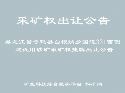 黑龍江省呼瑪縣白銀納鄉(xiāng)國道331西側(cè)建設(shè)用砂礦采礦權(quán)掛牌出讓公告