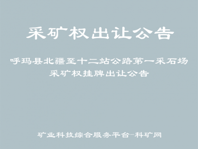 呼瑪縣北疆至十二站公路第一采石場采礦權(quán)掛牌出讓公告