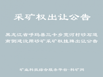 黑龍江省呼瑪縣三卡鄉(xiāng)寬河村砂石道南側(cè)建設(shè)用砂礦采礦權(quán)掛牌出讓公告