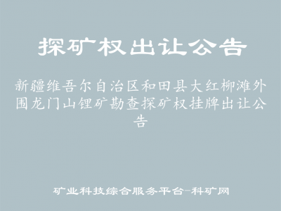 1.出讓區(qū)塊名稱:新疆維吾爾自治區(qū)和田縣大紅柳灘外圍龍門山鋰礦勘查