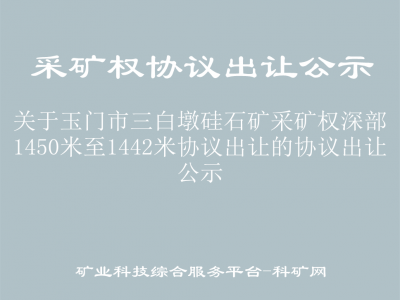 礦山名稱:玉門市三白墩硅石礦采礦權(quán)深部1450米至1442米協(xié)議出讓
