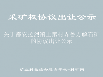 根據(jù)《國(guó)土資源部關(guān)于印發(fā)礦業(yè)權(quán)出讓交易規(guī)則的通知》(自然資規(guī)〔2023〕1號(hào))《廣西壯族自治區(qū)自然資源廳關(guān)于印發(fā)廣西壯族自治區(qū)礦業(yè)權(quán)交易管理辦法的通知》(桂自然資規(guī)〔2019〕1號(hào))等有關(guān)規(guī)定,現(xiàn)對(duì)都安拉烈鎮(zhèn)上第村弄魯方解石礦采礦權(quán)協(xié)議出讓公示如下: