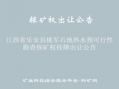 為促進礦產(chǎn)資源勘查開采,按照相關(guān)法律法規(guī)和規(guī)范性文件規(guī)定,江西省自然資源廳組織江西省樂安縣桃軍石地?zé)崴A(yù)可行性勘查探礦權(quán)網(wǎng)上掛牌出讓。