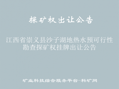 為促進(jìn)礦產(chǎn)資源勘查開采,按照相關(guān)法律法規(guī)和規(guī)范性文件規(guī)定,江西省自然資源廳組織江西省崇義縣沙子湖地?zé)崴A(yù)可行性勘查探礦權(quán)網(wǎng)上掛牌出讓。