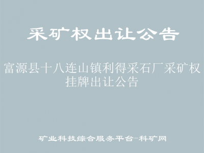 經(jīng)富源縣人民政府批準(zhǔn),富源縣自然資源局委托富源縣公共資源交易中心對(duì)富源縣十八連山鎮(zhèn)利得采石廠采礦權(quán)公開掛牌出讓,現(xiàn)將有關(guān)事項(xiàng)公告如下: