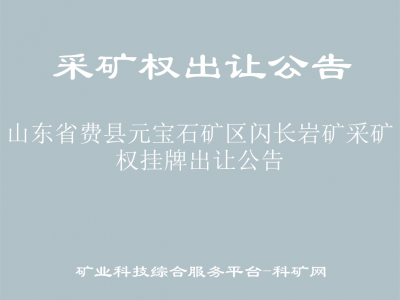 根據(jù)《中華人民共和國礦產(chǎn)資源法》《自然資源部關(guān)于印發(fā)礦業(yè)權(quán)出讓交易規(guī)則的通知》和《山東省礦業(yè)權(quán)出讓工作規(guī)范》等有關(guān)法律法規(guī)的規(guī)定。受臨沂市自然資源和規(guī)劃局委托,費(fèi)縣自然資源和規(guī)劃局對山東省費(fèi)縣元寶石礦區(qū)閃長巖礦采礦權(quán)實(shí)施網(wǎng)上掛牌出讓?,F(xiàn)將有關(guān)事項(xiàng)公告如下: