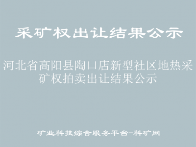 根據(jù)《自然資源部關(guān)于印發(fā)〈礦業(yè)權(quán)出讓交易規(guī)則〉的通知》(自然資規(guī)〔2023〕1號(hào))、《河北省自然資源廳關(guān)于委托出讓地?zé)岵傻V權(quán)的通知》及有關(guān)法律法規(guī),以拍賣方式出讓河北省高陽縣陶口店新型社區(qū)地?zé)岵傻V權(quán),拍賣出讓結(jié)果公示如下:
