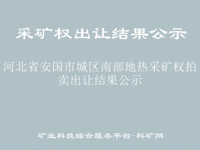 根據(jù)《自然資源部關(guān)于印發(fā)〈礦業(yè)權(quán)出讓交易規(guī)則〉的通知》(自然資規(guī)〔2023〕1號)、《河北省自然資源廳關(guān)于委托出讓地熱采礦權(quán)的通知》及有關(guān)法律法規(guī),以拍賣方式出讓河北省安國市城區(qū)南部地熱采礦權(quán),拍賣出讓結(jié)果公示如下: