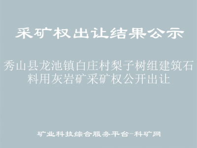 秀山縣龍池鎮(zhèn)白莊村梨子樹組建筑石料用灰?guī)r礦采礦權(quán)公開出讓