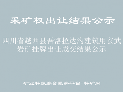 根據(jù)《中華人民共和國礦產(chǎn)資源法》《探礦權(quán)采礦權(quán)招標(biāo)拍賣掛牌管理辦法(試行)》《自然資源部關(guān)于印發(fā)礦業(yè)權(quán)出讓交易規(guī)則的通知》(自然資規(guī)〔2023〕1號(hào))《自然資源部關(guān)于深化礦產(chǎn)資源管理改革若干事項(xiàng)的意見》(自然資規(guī)〔2023〕6號(hào))《財(cái)政部 自然資源部 稅務(wù)總局關(guān)于印發(fā)<礦業(yè)權(quán)出讓收益征收辦法>的通知》(財(cái)綜〔2023〕10號(hào))《四川省自然資源廳關(guān)于貫徹落實(shí)〈自然資源部關(guān)于推進(jìn)礦產(chǎn)資源管理改革若干事項(xiàng)的意見(試行)〉精神若干事項(xiàng)的通知》(川自然資規(guī)〔2020〕9號(hào))等文件規(guī)定,報(bào)經(jīng)涼山州人民政府批準(zhǔn),受涼山州自然資源局委托,涼山州公共資源交易服務(wù)中心組織實(shí)施四川省越西縣吾洛拉達(dá)溝建筑用玄武巖礦掛牌出讓工作,現(xiàn)將有關(guān)事項(xiàng)公告如下。