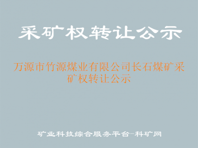 根據(jù)《探礦權采礦權轉讓管理辦法》《礦業(yè)權交易規(guī)則》等相關規(guī)定,現(xiàn)將萬源市竹源煤業(yè)有限公司長石煤礦采礦權轉讓有關事項公示如下。