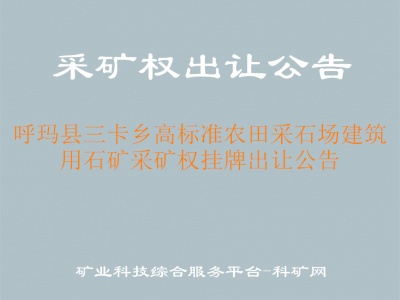 呼瑪縣三卡鄉(xiāng)高標準農(nóng)田采石場建筑用石礦采礦權(quán)掛牌出讓公告