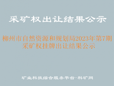 根據(jù)《中華人民共和國礦產(chǎn)資源法》、《自然資源部關(guān)于印發(fā)礦業(yè)權(quán)出讓交易規(guī)則的通知》(自然資規(guī)〔2023〕1號)及有關(guān)規(guī)定,由柳州市礦業(yè)權(quán)交易中心組織的2023年第7期采礦權(quán)掛牌出讓已結(jié)束,現(xiàn)將采礦權(quán)掛牌出讓成交結(jié)果公示如下: