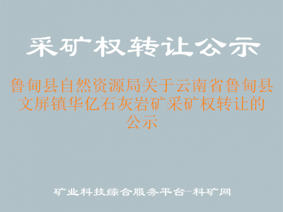 魯?shù)榭h自然資源局關(guān)于云南省魯?shù)榭h文屏鎮(zhèn)華億石灰?guī)r礦采礦權(quán)轉(zhuǎn)讓的公示