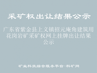 根據《中華人民共和國礦產資源法》、《礦業(yè)權出讓交易規(guī)則》及有關法律法規(guī)的規(guī)定,我局委托河源市公共資源交易中心于2024年1月11日至2024年1月25日16時網上掛牌出讓廣東省紫金縣上義鎮(zhèn)招元庵角建筑用花崗巖礦采礦權,現將成交結果公示如下: