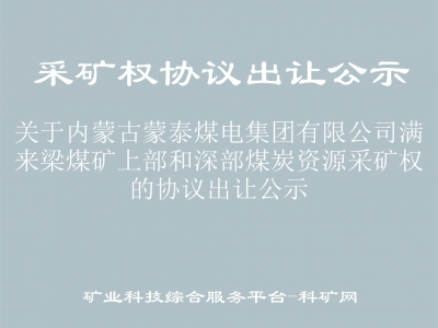 關(guān)于內(nèi)蒙古蒙泰煤電集團有限公司滿來梁煤礦上部和深部煤炭資源采礦權(quán)的協(xié)議出讓公示