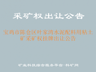 項目名稱:寶雞市陳倉區(qū)葉家灣水泥配料用粘土礦采礦權(quán)
