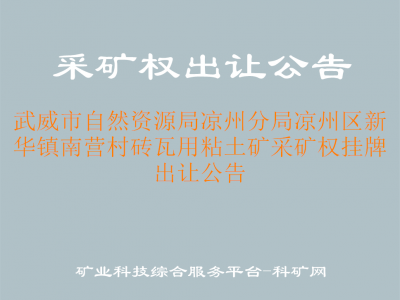 武威市自然資源局涼州分局涼州區(qū)新華鎮(zhèn)南營村磚瓦用粘土礦采礦權掛牌出讓公告