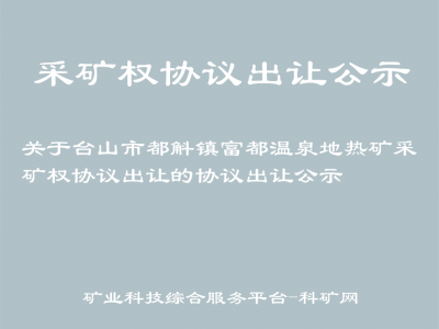 礦山名稱:臺山市都斛鎮(zhèn)富都溫泉地?zé)岬V采礦權(quán)協(xié)議出讓