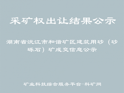 湖南省沅江市和諧礦區(qū)建筑用砂(砂礫石)礦成交信息公示