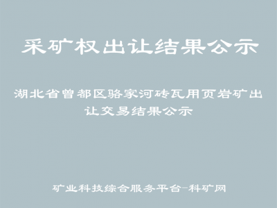 隨州市曾都區(qū)自然資源和規(guī)劃局委托隨州市國土資源交易中心于2023年12月22日至2024年01月05日以網(wǎng)上掛牌方式,公開出讓湖北省曾都區(qū)駱家河礦區(qū)磚瓦用頁巖礦采礦權(quán),現(xiàn)將成交結(jié)果公示如下