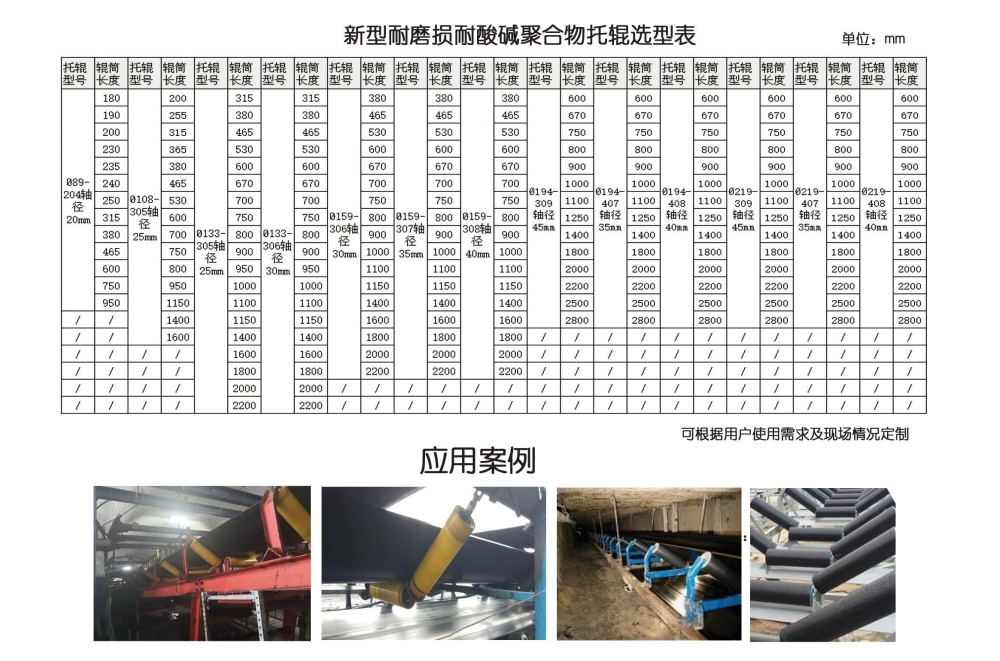 業(yè)現(xiàn)代化“減員提效”相背離。針對(duì)影響托輥使用壽命的四大問題,我們借鑒國內(nèi)外先進(jìn)技術(shù)經(jīng)驗(yàn),成功研發(fā)了新型耐損耐酸堿聚合物托輥,其管體為我公司引進(jìn)德國技術(shù)工藝和設(shè)備,以多種高分子材料混合物通過一系列工藝流程加工而成的托輥專用聚合物管材,擁有自主知識(shí)產(chǎn)權(quán)。新型聚合物托輥除軸和軸承為鋼制外,其余組件全部由熱塑性工程料制成,耐磨損、耐酸堿、抗沖擊力強(qiáng)、重量輕、壽命長、不黏連物料、不結(jié)冰,是替代傳統(tǒng)托輥的優(yōu)秀產(chǎn)品。新型聚合物托輥解決了以下四項(xiàng)核心技術(shù):