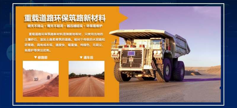 重載道路環(huán)保筑路新材料是指就地取材,只使用當(dāng)?shù)氐耐寥郎笆?,添加土路漿修筑的道路。相對于傳統(tǒng)的水泥路和瀝青路,具有成本低、速度快、載重強、純綠色、無泥塵、免維護(hù)等突出優(yōu)勢。