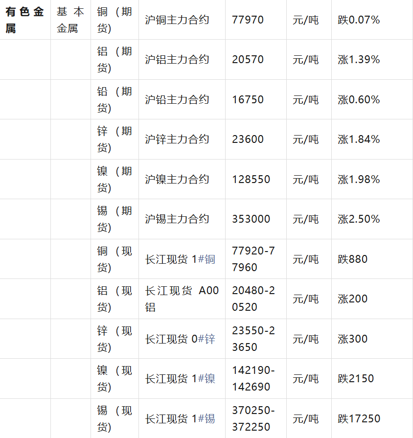 3月16日有色金屬期貨市場(chǎng)普遍飄紅,滬鋁、滬鋅、滬鎳、滬錫均有不同程度上漲,僅滬銅微跌。