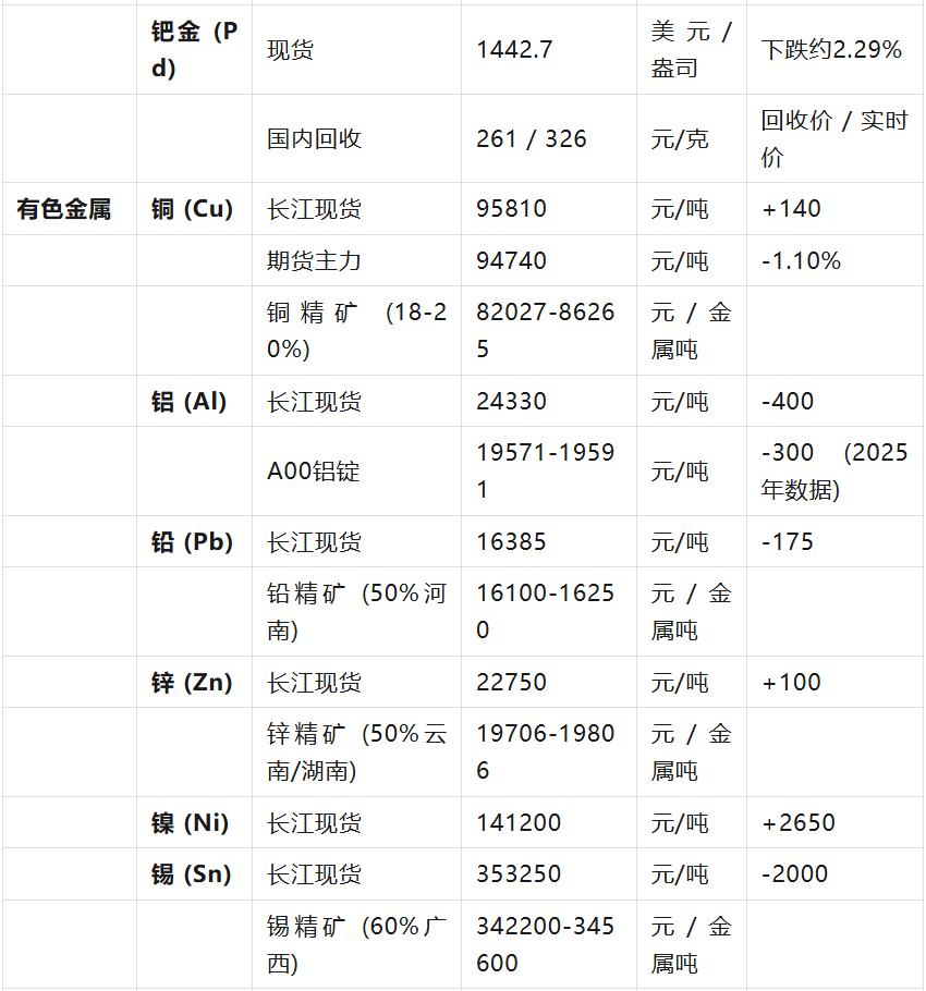 基礎(chǔ)金屬漲跌不一:在有色金屬中,銅價小幅上漲,而鋁、鉛、錫價格均出現(xiàn)不同程度的下跌。鎳價則有顯著上漲。整體來看,基礎(chǔ)金屬市場表現(xiàn)分化,受宏觀經(jīng)濟預(yù)期和供需關(guān)系共同影響。
