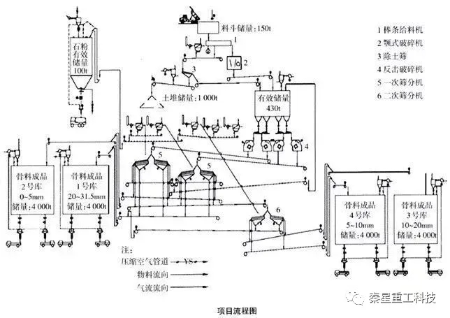 秦星重工時產(chǎn)1000噸石灰石骨料生產(chǎn)線工藝流程