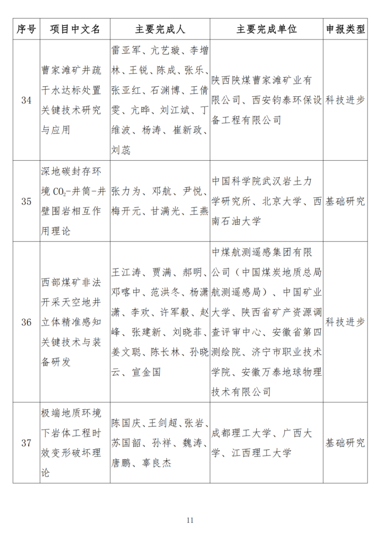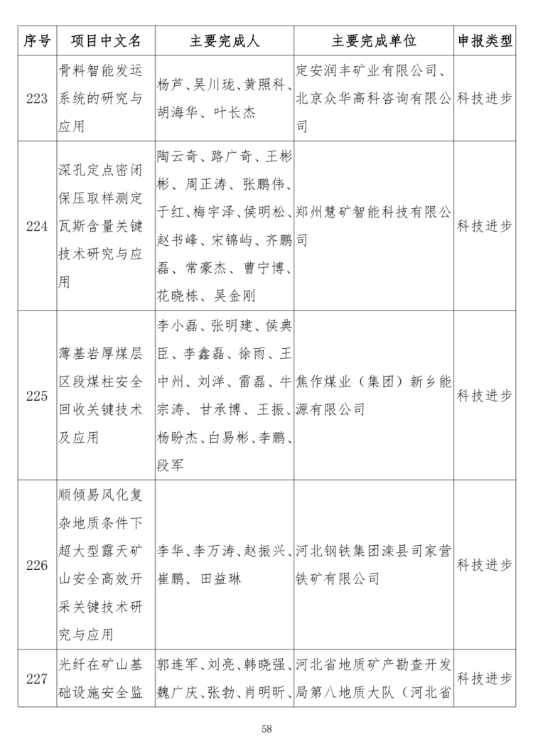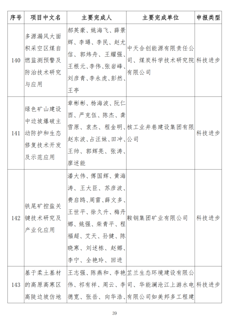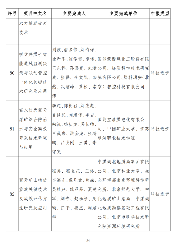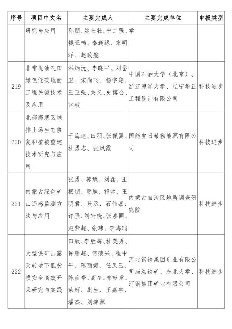 附:2024年度綠色礦山科學(xué)技術(shù)獎擬獲獎項目