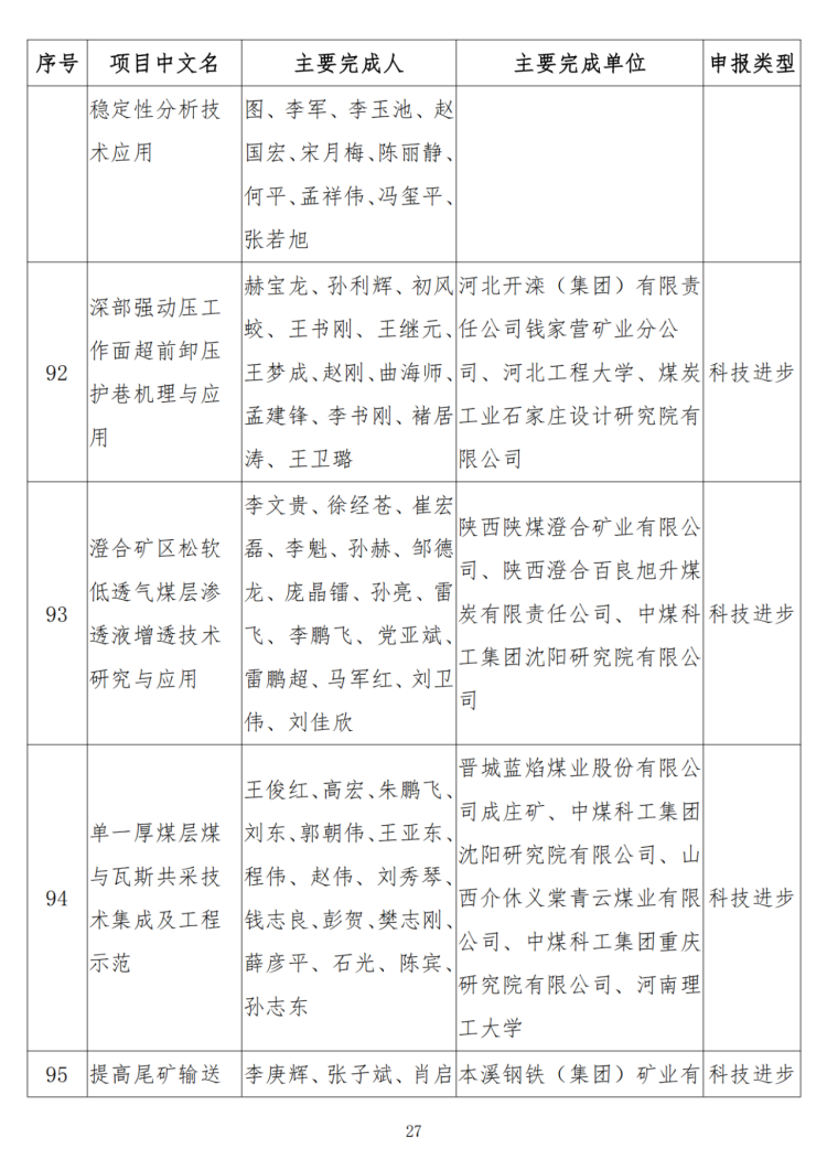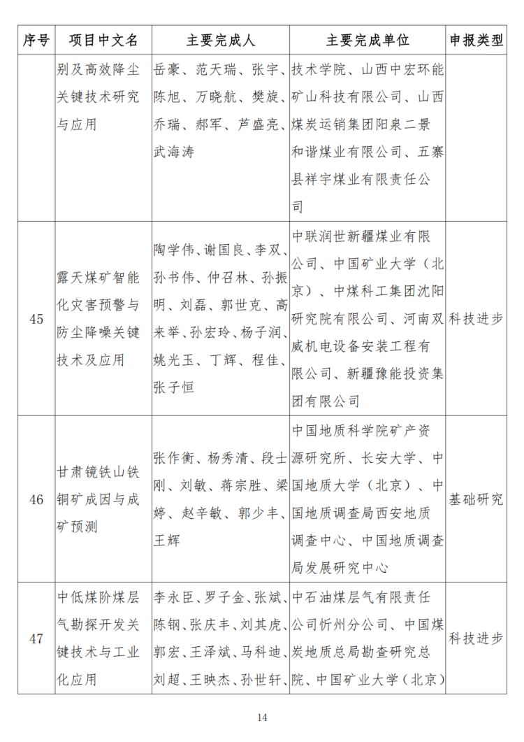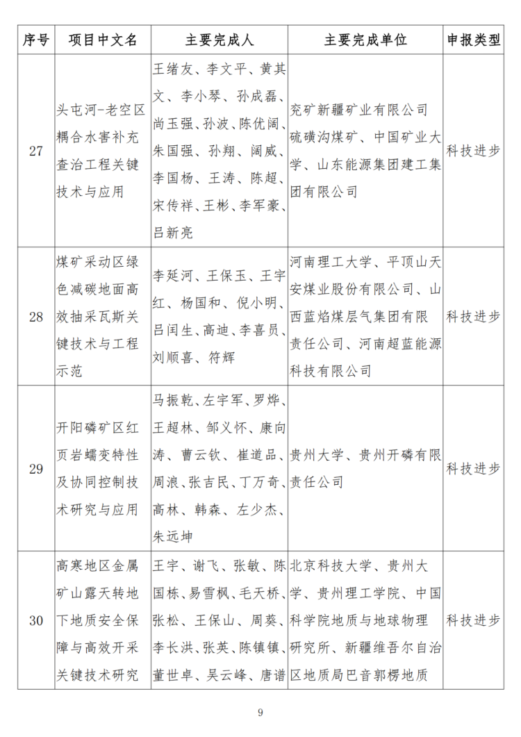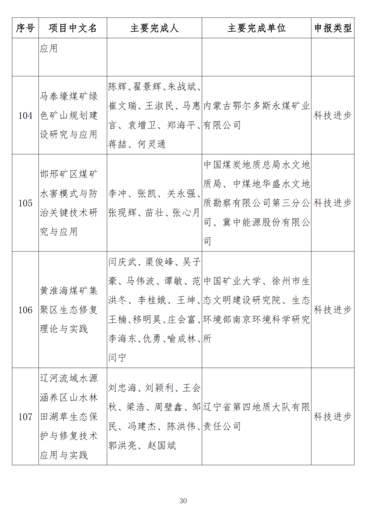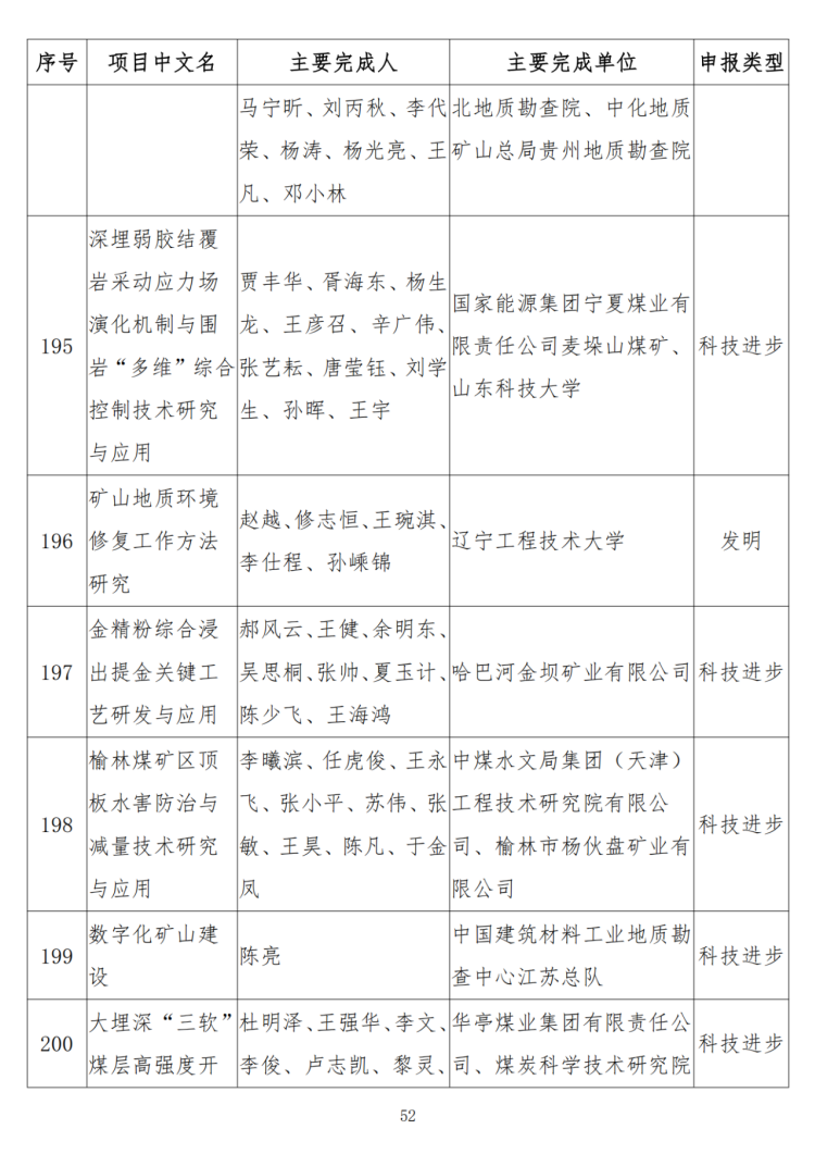 附:2024年度綠色礦山科學(xué)技術(shù)獎擬獲獎項目