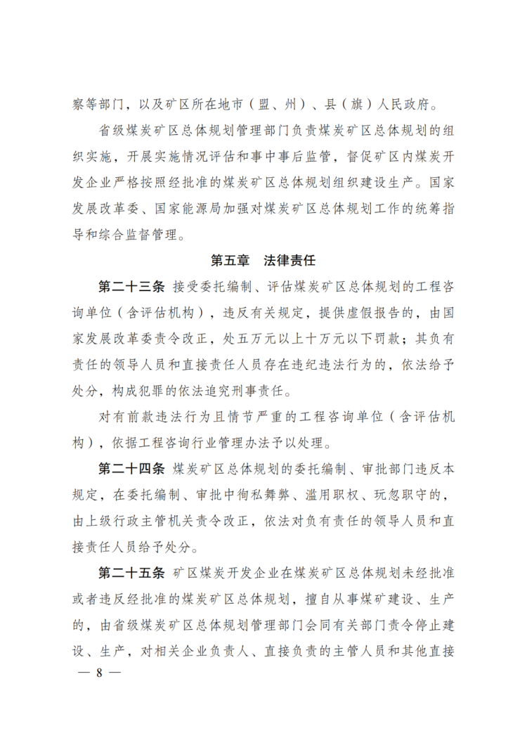 核心提示:據(jù)國家發(fā)改委網(wǎng)站12月23日消息,《煤炭礦區(qū)總體規(guī)劃管理規(guī)定》已經(jīng)2024年12月2日第19次委務(wù)會議審議通過,現(xiàn)予公布,自2025年2月