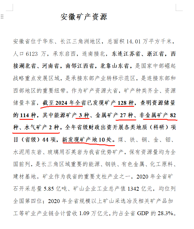 安徽省礦產(chǎn)資源豐富,種類較全,在全國(guó)具有重要地位,為經(jīng)濟(jì)發(fā)展提供了有力支撐。