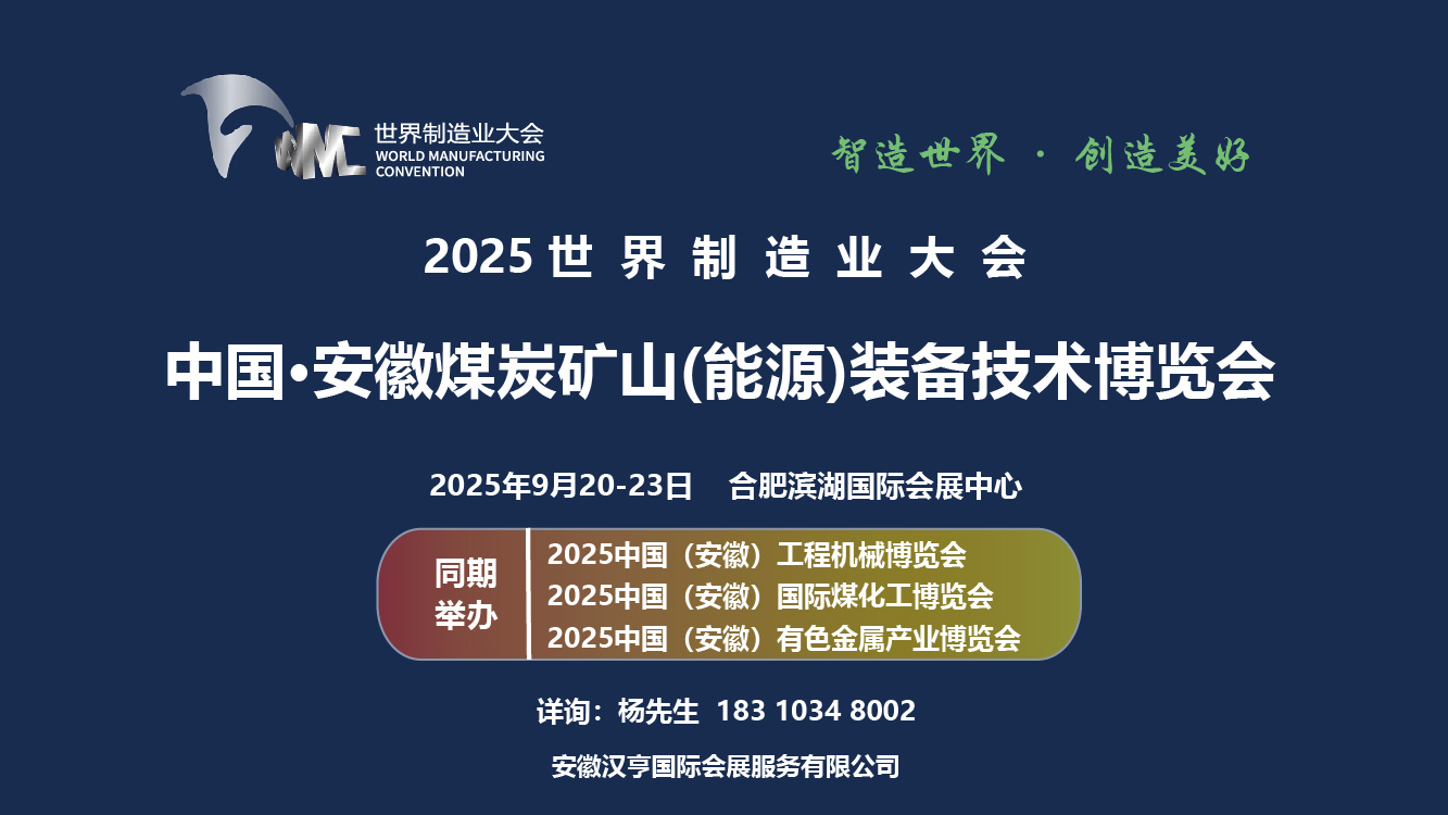 制造業(yè)盛會(huì)再啟新篇!2025 世界制造業(yè)大會(huì) —— 中國(guó)?安徽煤炭礦山 (能源) 裝備技術(shù)博覽會(huì),將于 9 月 20 - 23 日在合肥濱湖國(guó)際會(huì)展中心盛大舉行。此次博覽會(huì)聚焦煤炭礦山與能源裝備技術(shù)前沿,同期還將舉辦工程機(jī)械、國(guó)際煤化工、有色金屬產(chǎn)業(yè)等博覽會(huì)。匯聚行業(yè)精銳,展示創(chuàng)新成果,共探產(chǎn)業(yè)發(fā)展新路徑。誠(chéng)邀各界人士共襄盛舉!期待與您攜手,智造世界,創(chuàng)造美好。