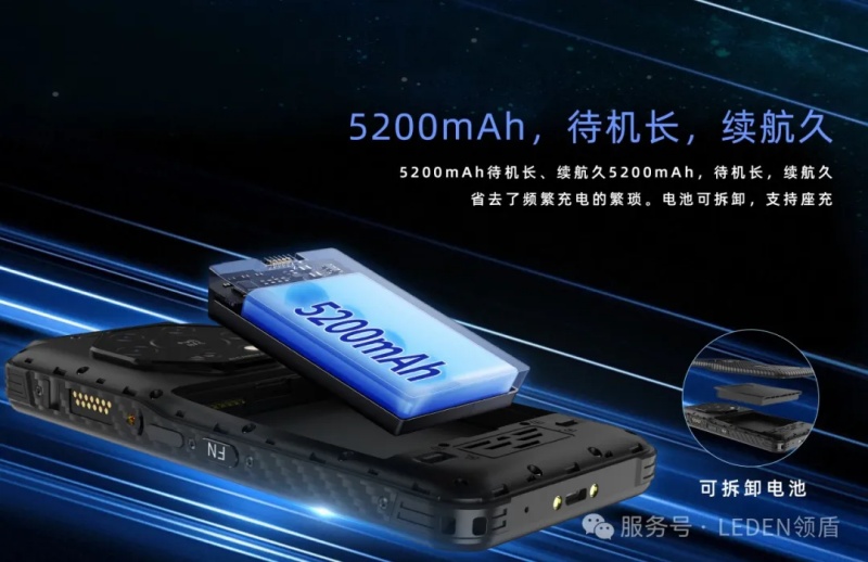 針對(duì)防爆終端的特殊應(yīng)用場(chǎng)景,LEDEN-L1配備了5200mAh的大容量電池,滿足長(zhǎng)時(shí)間作業(yè)需求。更重要的是,該電池采用特殊設(shè)計(jì),即便在低溫環(huán)境下也能保持穩(wěn)定的性能輸出,有效避免寒冷導(dǎo)致的電量驟減問題。可拆卸設(shè)計(jì)便于快速更換電池,確保任務(wù)連續(xù)性,讓每一次出勤都充滿信心。