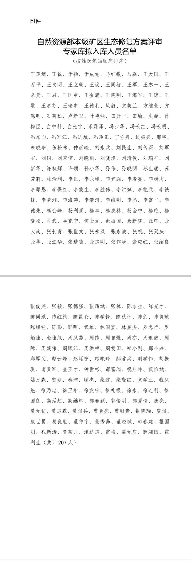 關(guān)于自然資源部本級(jí)礦區(qū)生態(tài)修復(fù)方案評(píng)審專(zhuān)家?guī)鞌M入庫(kù)人員的公示