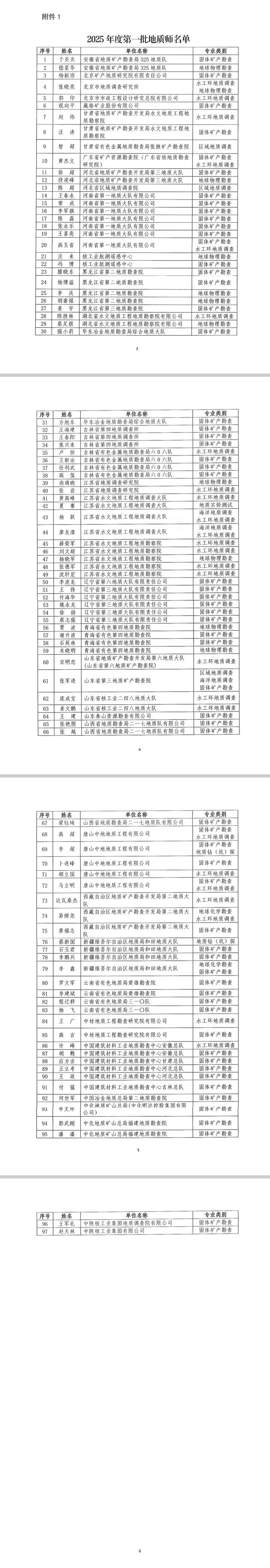 附件:1.2025年度第一批地質(zhì)師名單