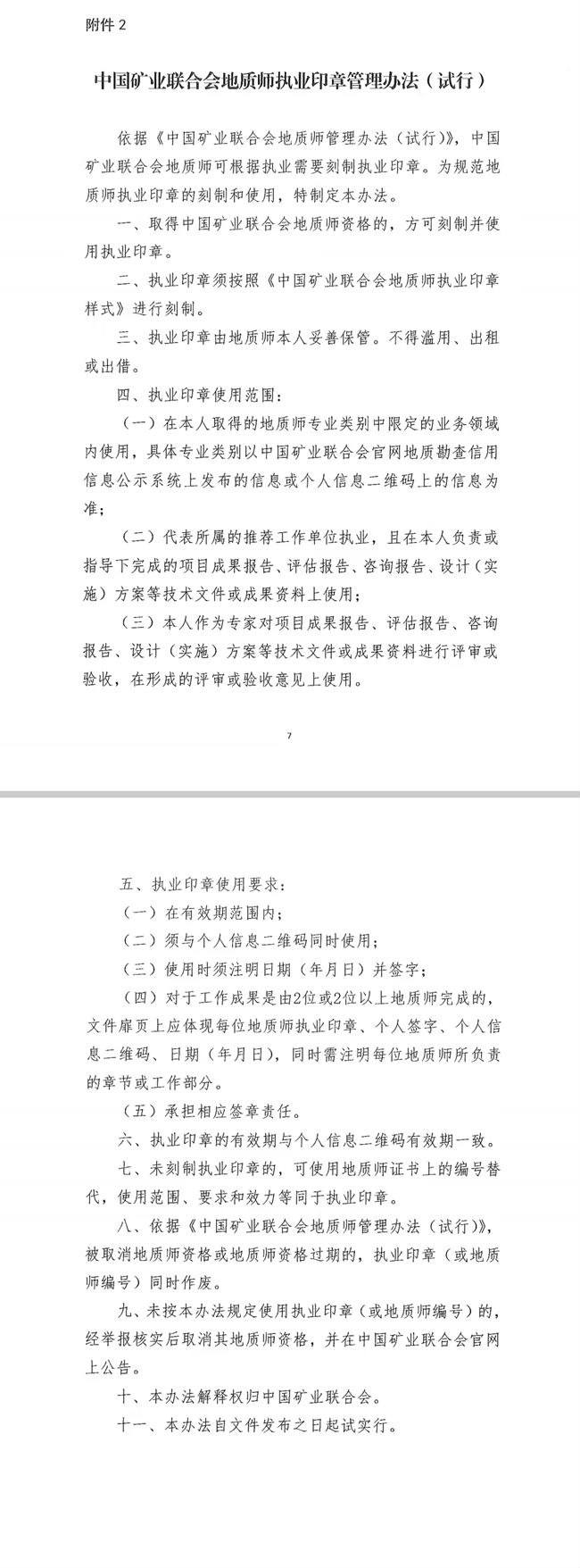 2.《中國礦業(yè)聯(lián)合會(huì)地質(zhì)師執(zhí)業(yè)印章管理辦法(試行)》