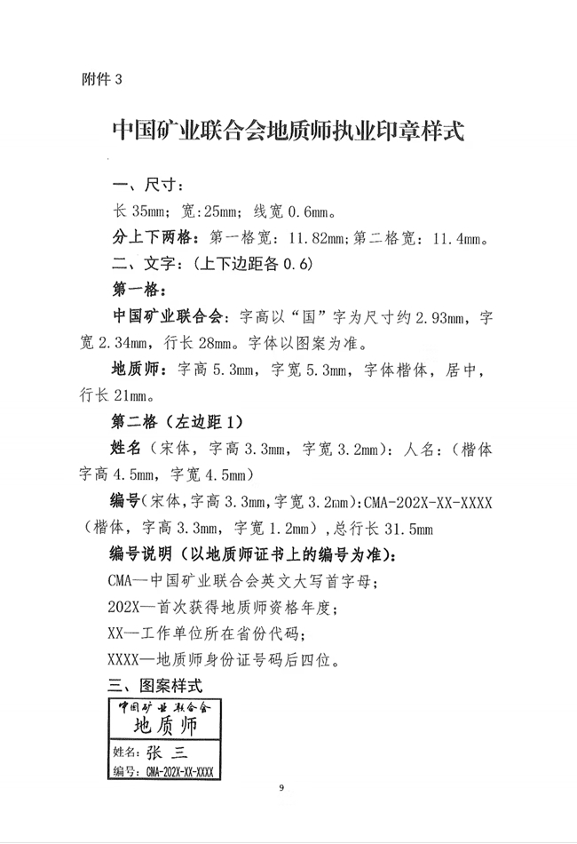 3.《中國礦業(yè)聯(lián)合會(huì)地質(zhì)師執(zhí)業(yè)印章樣式》