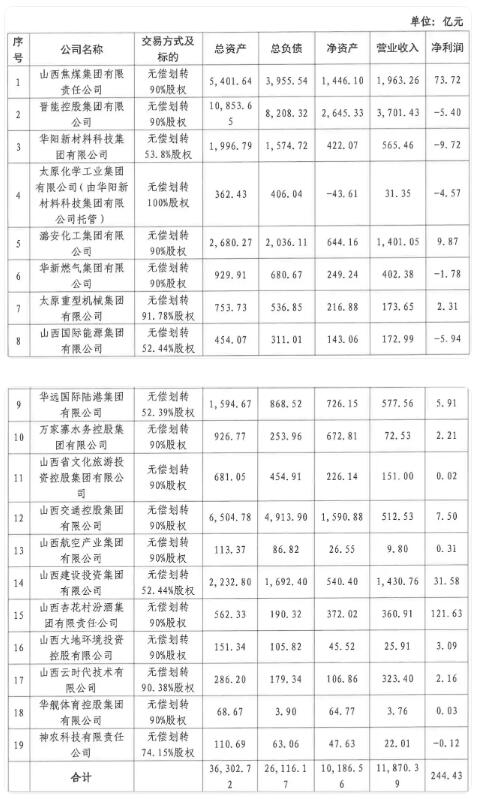 (數(shù)據(jù)來源:山西省國(guó)有資本運(yùn)營(yíng)有限公司關(guān)于所持省屬企業(yè)部分股權(quán)劃轉(zhuǎn)至省國(guó)資委有關(guān)事宜的公告)