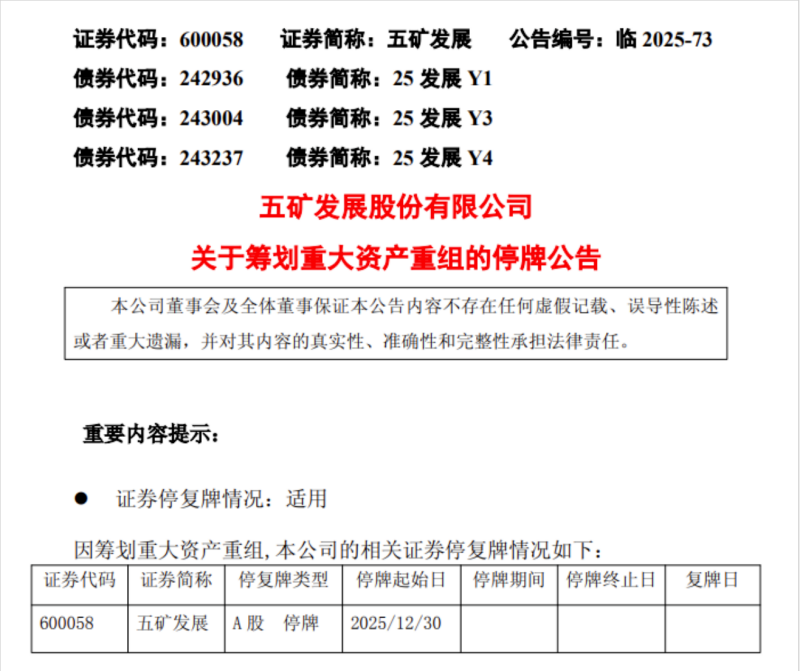 五礦發(fā)展在公告中表示,本次重大資產重組是為貫徹落實國務院關于推動資本市場高質量發(fā)展和提高上市公司質量的有關精神,以及履行實際控制人歷史承諾和加強上市公司規(guī)范運作。