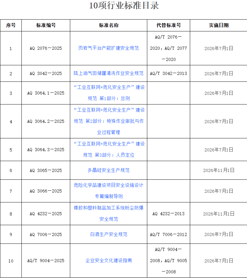 中華人民共和國應(yīng)急管理部批準《頁巖氣平臺產(chǎn)能擴建安全規(guī)范》等10項行業(yè)標準(標準文本附后),現(xiàn)予公布。